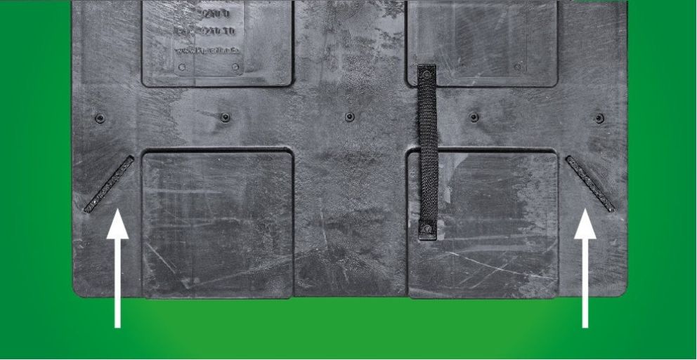 Die vier Antirutschstreifen an der Unterseite der Palette maximieren die Sicherheit beim Manövrieren mit dem Gabelstapler.