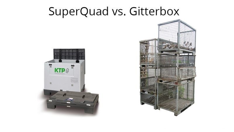 In diesem Blogbeitrag vergleichen wir den Super Quad, ein faltbares Containersystem von KTP, mit einem Standard-Stahlgittercontainer in der Euro-Dimension. Der Maschendrahtcontainer ist ein starrer Stahlcontainer, der weltweit für die Lagerung und den Transport von schweren Lasten bis zu 1000 kg verwendet wird. Der SuperQuad hingegen ist ein leichter, faltbarer Kunststoffbehälter, der besonders schnell und einfach zu handhaben ist. Kann dieser Behälter der perfekte Ersatz für Drahtgitter sein? Wir sagen JA!