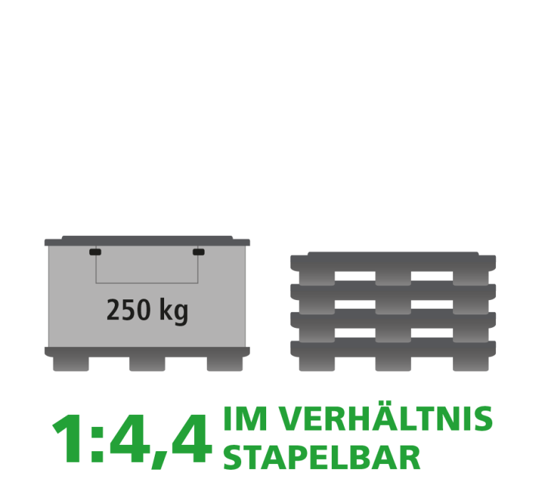 • Sichere und stabile Stapelung der Behälter im Voll- und Leergut