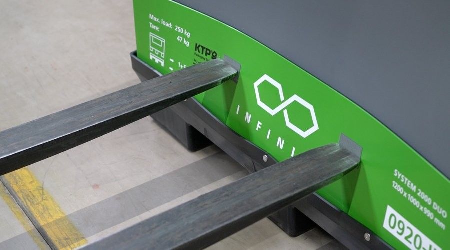 In the Duo version, the two KTP container systems are equipped with an additional sleeve, the return collar. This collar is directly connected to the pallet. Therefore, inside packaging can be accommodated safely and cleanly in the empty container with a reduced volume. All components are transported as one unit.