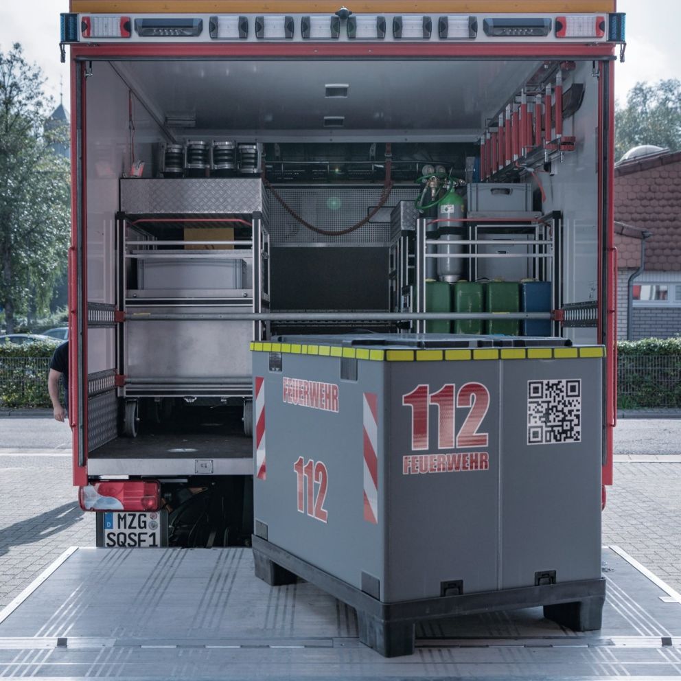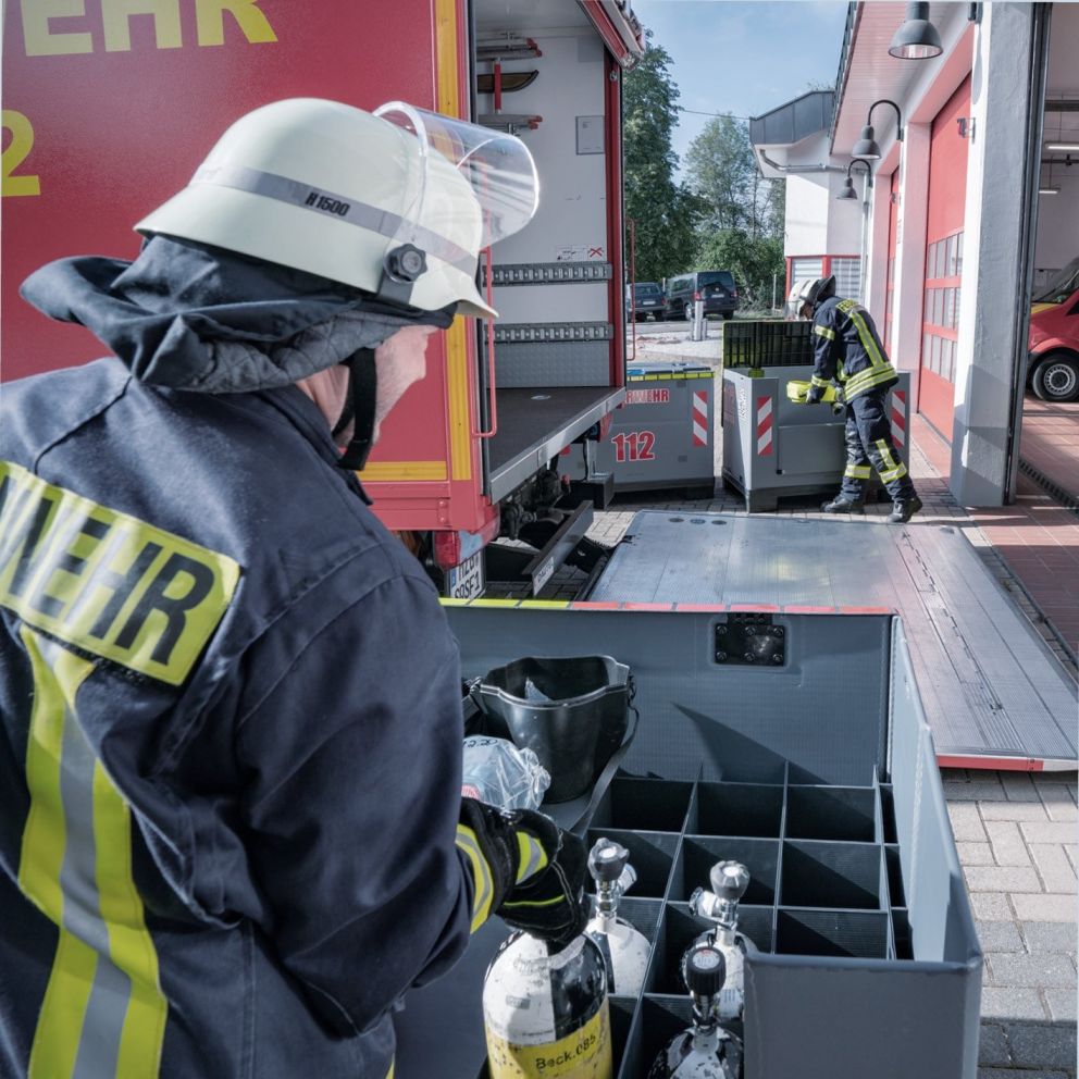 The volunteer fire department in Beckingen already has KTP SuperQuad SmartFix ® containers in use. “We are thrilled with the handling of this box. Our emergency material is stowed away in a flash and kept safe. And when it’s not in use, you can simply fold it up. That’s amazing!”